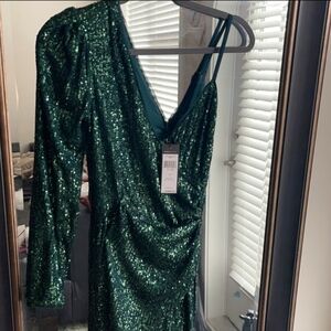 NWT,Size XS but fit S perfect, this one shoulder sequin dress. Features a sleek silhouette and elegant design, Note that the color name in the tag is Fern (like emerald, green is exactly like pictures), and this post has pictures only for reference toseethestylebetter ( from website).Thank you