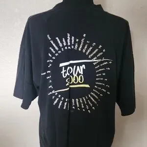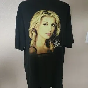 Stylish black men's tee featuring Faith Hill Concert 2000. Perfect for everyday casual wear. Notice in photo a small hole and stain in front.