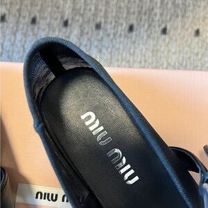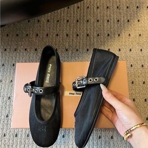Miu Miu Black Leather Flats with Buckle Detail