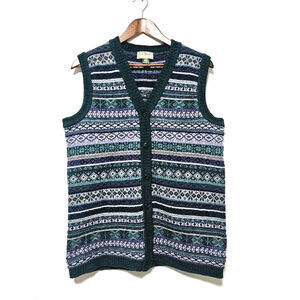 Vintage L.L. Bean Wool Cardigan Vest Women's Size M Fair Isle USA Green Retro Preppy Grandma