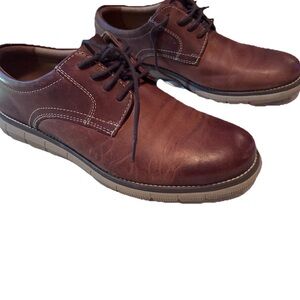 Elegant dark brown leather oxfords with lace-up design. Perfect for formal and casual wear. Durable craftsmanship by Johnston & Murphy Size 4