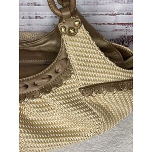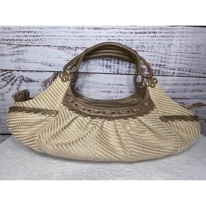 Cole Haan Sarah Bronze Straw Satchel Bag Boho Chic Beach Purse Woven Tote