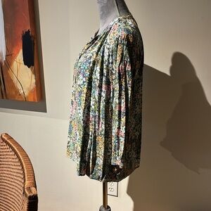 J. Jill Blue Green Floral Boxy Blouse Mandarin Collar, Size Small