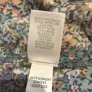 This J. Jill blouse features a relaxed, boxy fit with a mandarin collar and 3/4 sleeves, offering a comfortable & stylish look. The blue and green hues add a touch of elegance, making it a versatile addition to any wardrobe. Crafted for ease and style, made in Indonesia, machine washable. 100% rayon, in excellent used condition. There are three buttons down the front. Shoulder to hem measures approximately 21 1/2 inches and armpit to armpit measures approximately 22 1/2 inches.