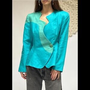Vintage 80s NWT Magali Collection blue shades skirted suit