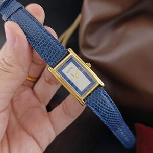 Vintage 1998 Gucci Quartz 2600L Women’s Watch Blue and White Dial, Gold-Plated