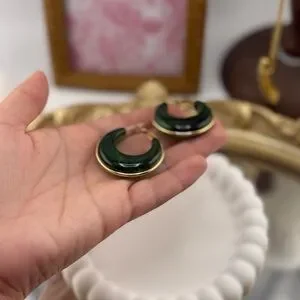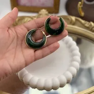 Elevate your everyday look with these bold green resin hoop earrings. Featuring a glossy marbled finish and framed with real PVD gold plating over stainless steel, these hoops are lightweight yet striking, offering the perfect mix of modern and chic.