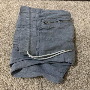 Athleta 100% linen joggers in a soft chambray blue.