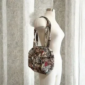 Vintage 1990s Cat Tapestry Quilted Bag Purse Tote Fabric Shoulder