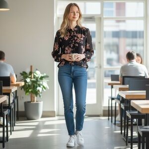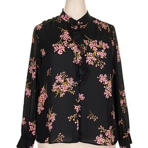 WhoWhatWear Floral Mandarin collar blouse Size Small