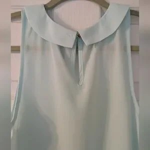 Chic sleeveless blouse with a keyhole detail and Peter Pan style collar. Soft fabric for a comfortable fit. Ideal for casual or dressy occasions. Like new condition, worn once. Ships from a smoke free home.