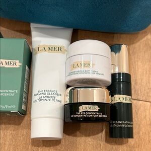 Indulge in La Mer's luxurious skincare collection. Includes creams, lotions, and serums. Perfect for hydration and rejuvenation.