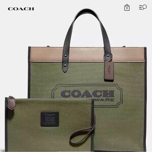 Coach Field Tote 40 Olive Green with Tan leather ❤️