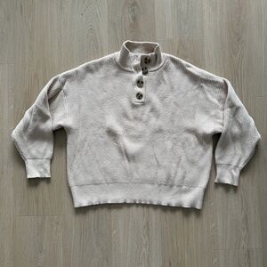 Camel colored button sweater from Mango. Overall in good condition, a few snags (pictured). Color is best represented in first and last photos.