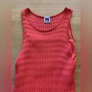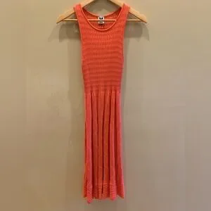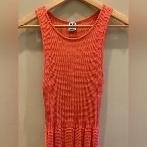 Sleeveless, stretchy, fully lined M Missoni midi dress. Super comfortable. In excellent condition with no flaws. The color is a vibrant pink-orange hue. Italian size 46.