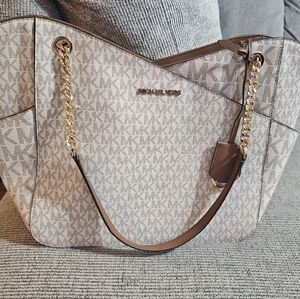 Michael Kors Cream and Brown Shoulder Bag