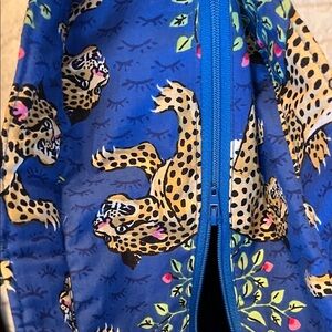 Embrace the wild with this blue tote bag and matching pouch (usually sold separately), adorned with a striking leopard design. Ideal for daily adventures or weekend trips.