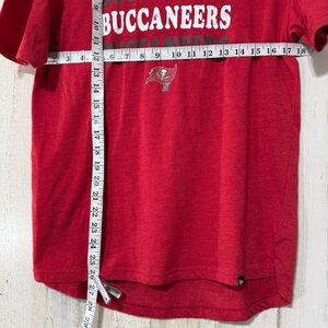 Bold red tee with Buccaneers logo. Ideal for fans and casual outings.