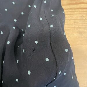 Trendy A-line skirt in size 2p in 100% silk. Please note one hole and other snags in the skirt but not noticeable unless close up. Waist is 11 inches.