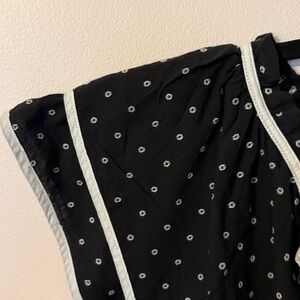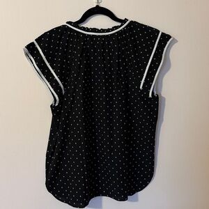 NWOT. Loft. Elegant black blouse with white polka dots. Features short sleeves and a stylish neckline. Ideal for versatile wear. Size Large. Perfect condition, pet free and smoke free home.
