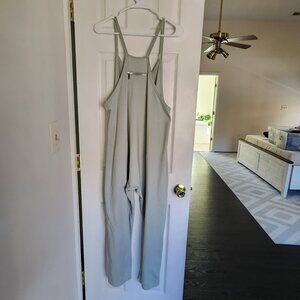 Sleeveless overalls, with relaxed fit design, solid color, two oversized patch pockets, long-rise silhouette, small zip pocket at back, long pants jumpsuits, v neck and racerback, cute and stylish outfits for women