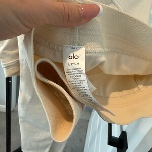 ALO Yoga Women's Heart throb oatmilk and white Sports Bra and leggings Set