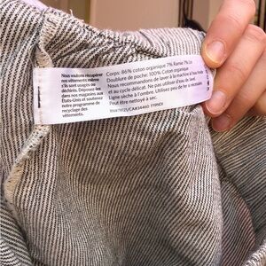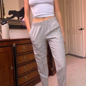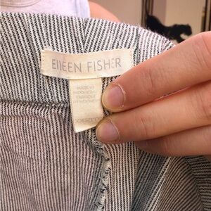 Chic and comfortable joggers by Eileen Fisher. Light gray color and white stripes.