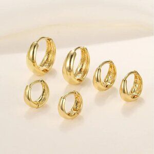 Women's 3Pairs Gold Hoop Earring Set Trendy Chunky Huggie Dainty Earring