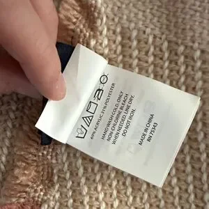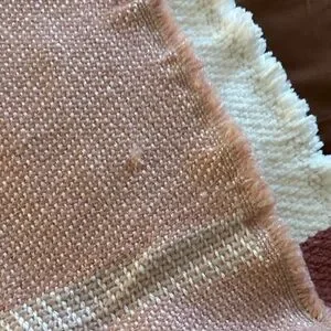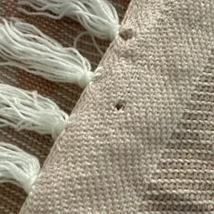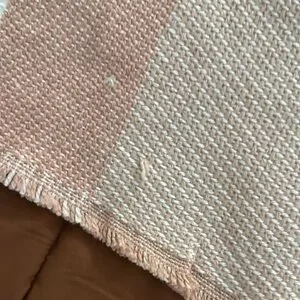 Elegant throw with geometric patterns. Soft pink and cream tones. Perfect for adding style and warmth.