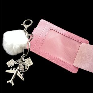 Pink Card Holder customized with bag charms/Keychains NIP