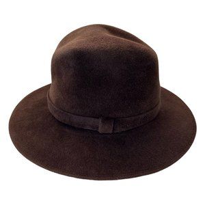 Henry Pollak Vintage Brown Launcelot Genuine Velour Hat. Made in Poland. Circa 1930's-1960's. Boho vibes. Gypsy. Indie. Wide brim hat. Fall hat. Winter hat. *AI model depiction of style. Halloween costume. Vintage hat.