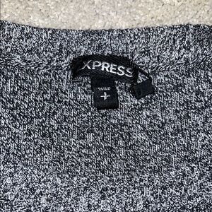 Chic heathered gray sweater. Soft knit fabric. Perfect for layering.