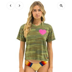Aviator Nation heart print boyfriend tee camp/neon pink. No longer available from Aviator Nation! Size XS