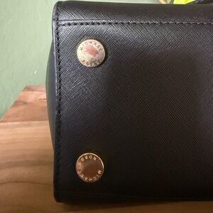 Michael Kors Selma Medium Saffiano Leather Satchel- Black & Gold
