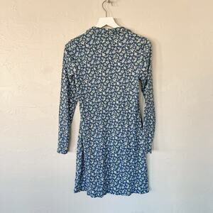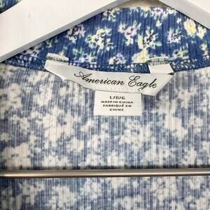 American Eagle Blue Floral Long-Sleeved Shirt Dress Large