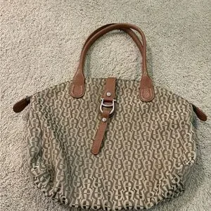Sophisticated tote with signature monogram design. Durable handles and secure buckle closure. Ideal for daily use.