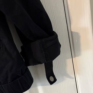Classic black utility-style jacket by Style & Co. Features a zip front with snap buttons, multiple pockets, and adjustable snap cuffs. Lightweight with a bit of stretch—great for layering in spring or fall. Clean, versatile piece that works casual or dressed up.
