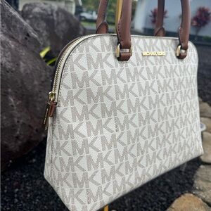 Michael Kors Signature Dome Satchel Vanilla Brown Crossbody Strap Minor Flaws