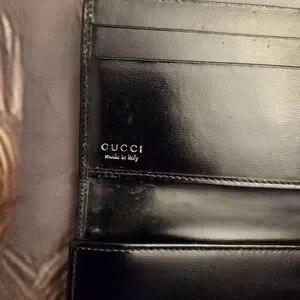 GUCCI BLK BI-FOLD CANVAS/LEATHER WALLET.
