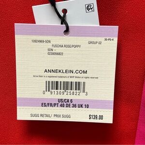NWT Anne Klein Colorblock Red Pink Sheath Dress Size 6 Midi 3/4 Sleeve