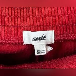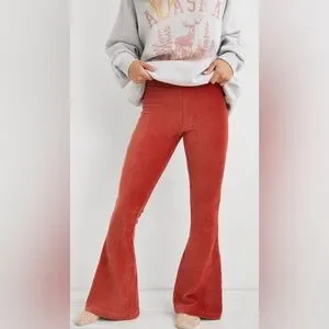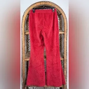 Aerie Groove-On Velour High Rise Flare Pants Ribbed Retro Red Medium EUC