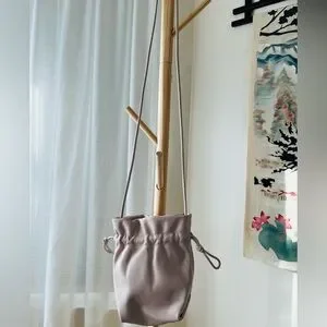 Soft leather and a simple design. Worn once, no flaws. Beautiful bag!