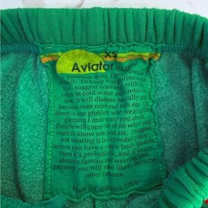 Aviator Nation Bolt Stripe Sweatpants-Kelly Green-Size XS. Good used condition. See pictures for approximate measurements. True color is stock photos. I tried to get a good picture in natural light and kitchen island overhead lighting and you can see the true Kelly green color on the tag photos.