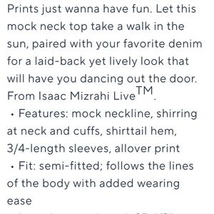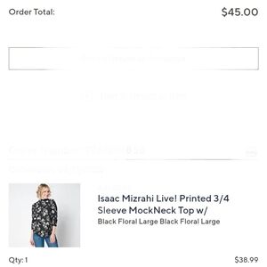 A Medium Issac mizrahi gorgeous shirt with a zipper. You can dress it up or wear it with jeans... It's a black and white flowered shirt.