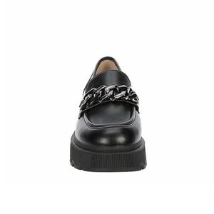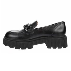 Stylish black loafers with chunky sole. Features a bold chain detail. Perfect for casual and formal wear.