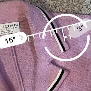 Half zip front. Gold tone buttons. Faux pockets.