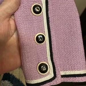 John Santana Knit is St. John Knits' signature, proprietary wool-rayon blend yarn (80% wool, 20% rayon) known for its exceptional quality, wrinkle resistance, shape retention, and comfortable, luxurious drape, forming the basis for iconic pieces like structured suits, elegant dresses, and pull-on pants that can even be stretched to fit, making it a hallmark of the brand's classic American sportswear.