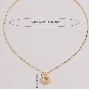 Double-layer three-dimensional gold stainless steel necklace, rhinestone love heart pendant necklace.