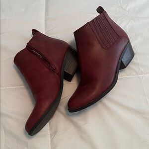 Elegant maroon ankle booties by Kim Rogers. Stylish and versatile for any outfit.