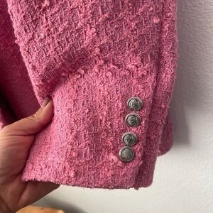 H&M TEXTURED DOUBLE-BREASTED BLAZER PINK SZ XL TWEED BLOGGERS BARBIE SILVER